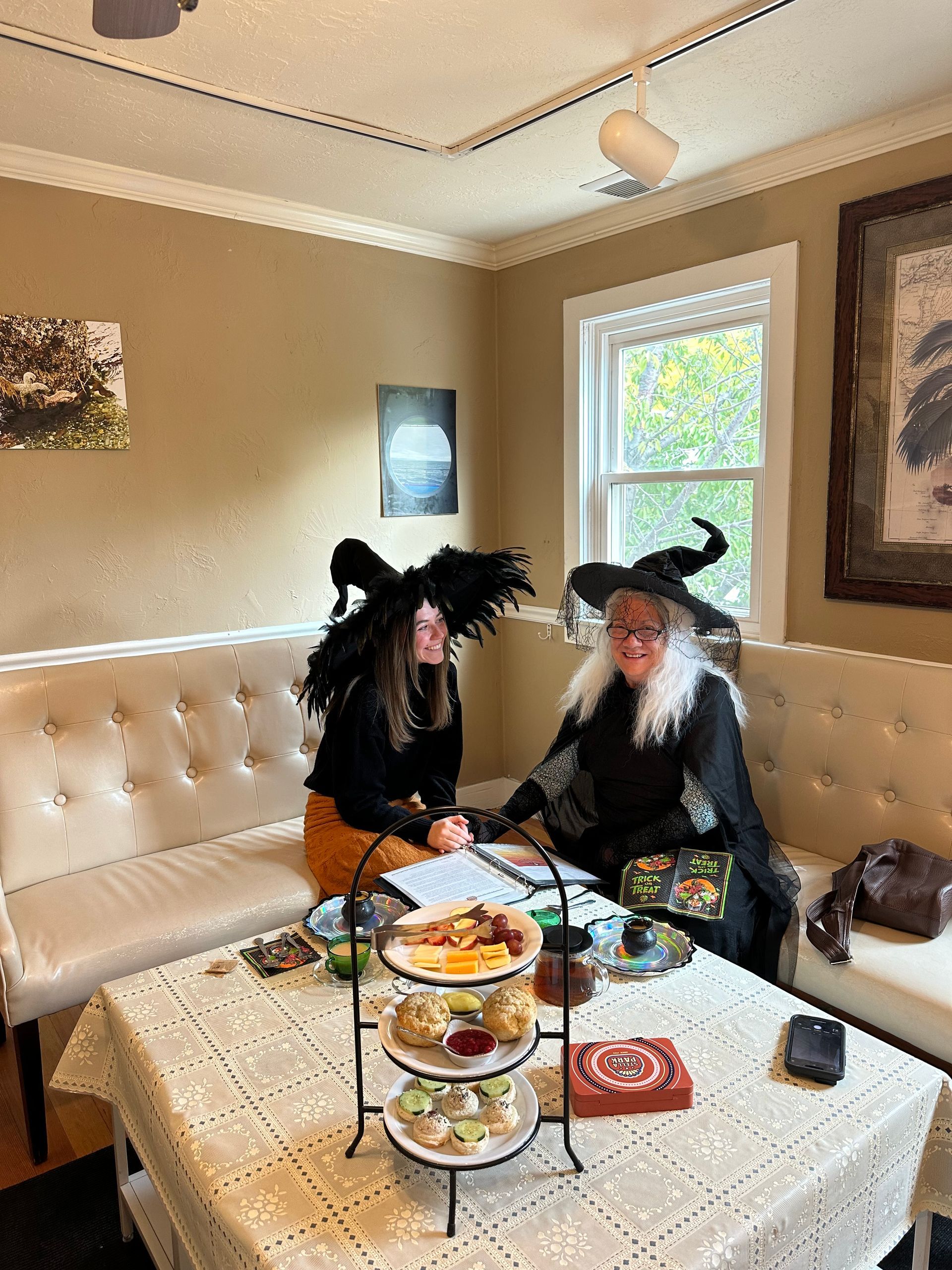 Join Auntie Rae for a witching good time with our spooktacular 5 course tea featuring: soup, finger sandwiches, scones, fruit and cheese plate, dessert, and of course tea! (We also offer hot chocolate, hot cider and other beverages if tea isn't your jam.)
